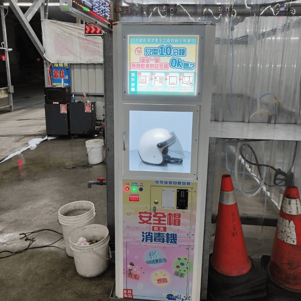 除了自助洗衣店,全國自助洗汽機車與24小時自助洗車場域,也非常適合導入安全帽烘洗機。洗車本身就有等待時間,機車族在洗車的同時處理安全帽清潔,符合實際使用情境。